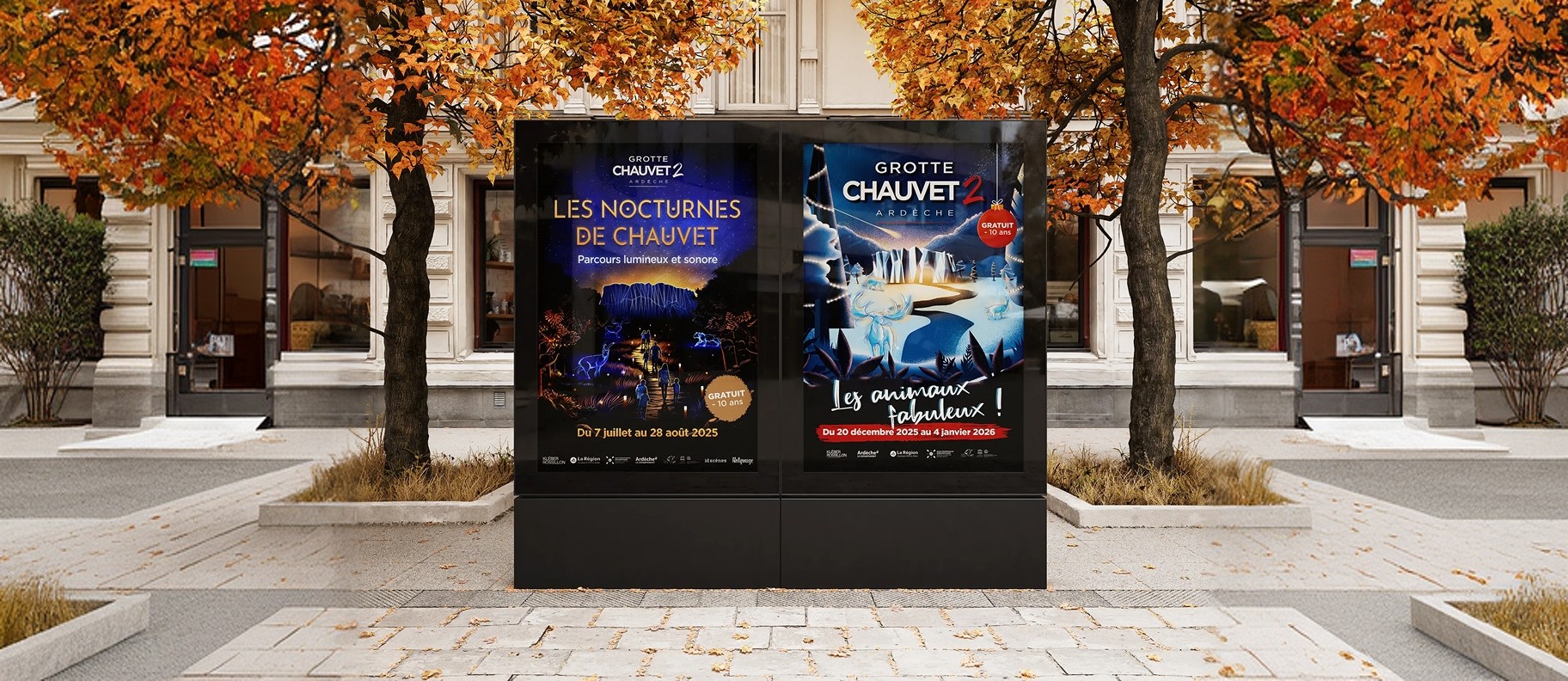 Selon les temps forts de l’année, l’univers visuel évolue. Pour certaines campagnes, nous avons exploré des mises en scène photographiques mêlant images existantes, intelligence artificielle et retouches manuelles. L’objectif : créer des rencontres inattendues entre les visiteurs et les animaux emblématiques de la grotte, dans des univers tantôt feutrés, tantôt spectaculaires mais toujours évocateurs.